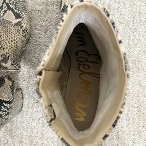 Sam Edelman Snakeskin Block Heel Ankle Boots 9.5 Pointed Toe Chic Fall