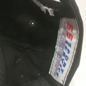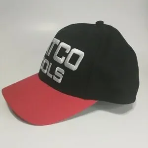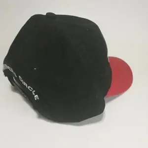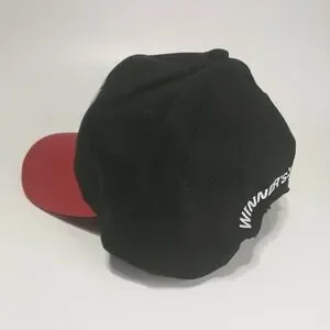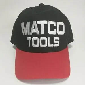 Matco Tools snapback hat features a bold two-tone design with a black crown and a vibrant red brim. The front is prominently embellished with high-quality white raised embroidery of the Matco Tools logo, while the back displays "Winner's Circle" text above the adjustable closure. Constructed from durable cotton twill by Sport Service, this cap offers a classic structured fit suitable for automotive enthusiasts and collectors alike. This item is in good pre-owned condition with light signs of wear. Perfect for casual weekend wear, garage work, or attending racing events.