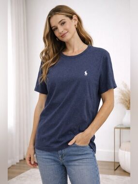 Classic Polo Ralph Lauren navy crewneck t-shirt featuring the iconic embroidered pony logo on the chest. A timeless, premium basic that never goes out of style—perfect for everyday wear, layering, or elevated casual looks.
