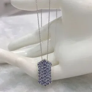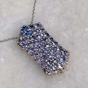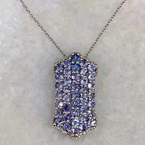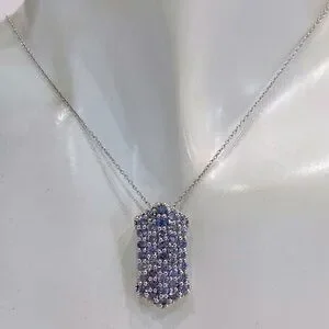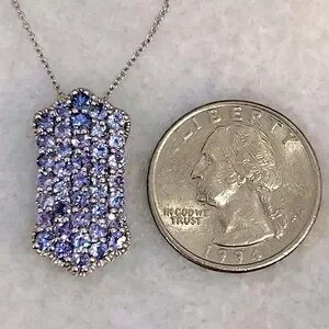 Wide vertical bar like design completely accented with Tanzanite stones set in sterling silver with platinum overlay