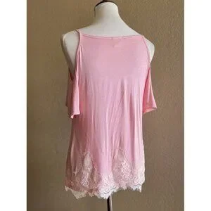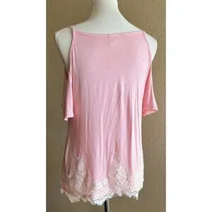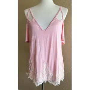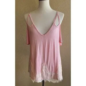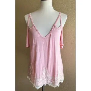 Self Esteem Womens pink Lace Trim Strappy Casual Top Size M