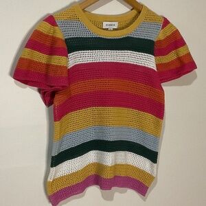 Colorful Striped Evereve Haven Flutter Sleeve Sweater with open weave stich