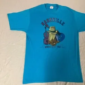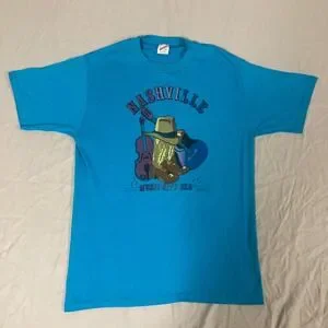 Vintage Jerzees Nashville Music City USA T-Shirt Blue Made in USA Large 50/50