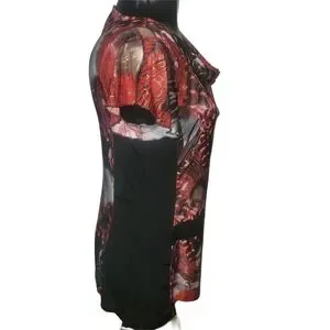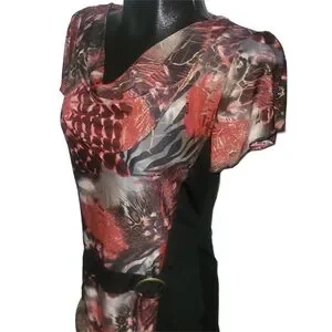 Champagne By Le Grenier Colorful Draped Neckline And Short Flutter Sleeved Top M