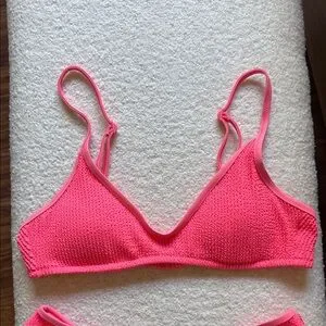 aerie Hot Pink Textured Bikini Top (M) & V‑Cut Bottom (S)