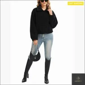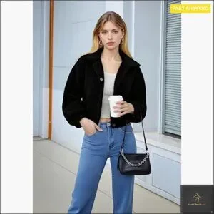 [ORIGINAL_TITLE: Faux Fur Cropped Jacket Long Sleeve Fleece Cozy Winter Outerwear Y2K Chic]