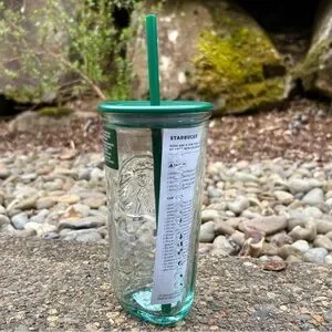 Starbucks Triangle Recycled Glass Tumbler 2026 Green 16 oz Cold Beverages Straw