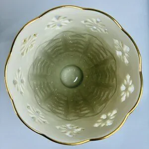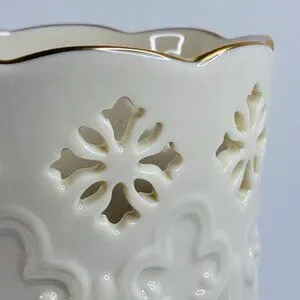 Lenox Fleur de Lis Collection Embossed Pierced Flower Vase Ivory Gold USA 7.5"