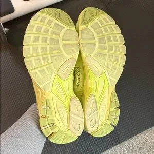 Lime green Saucony shoes with mesh and textured overlays. Ideal for active wear. Worn 2 times by my sneaker collector husband. In excellent condition! Men’s size 11.