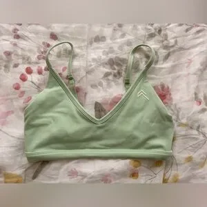 Size small, color Mint Green. Good condition but some discoloration on the inside of the bra from putting on with makeup, can probably get out in wash. No pads.