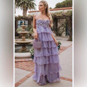 Make your fairytale moment come true in the Gabriella Maxi Dress! Featuring royal rows of ruffles crafted from dreamy fabric and an embellished bodice, this gown adds just the right amount of magic to your look. The ballgown-inspired silhouette will have you gracefully sweeping across the dance floor all night long, leaving you crowned the belle of the ball.