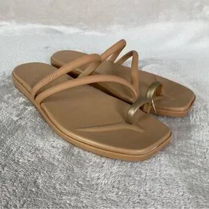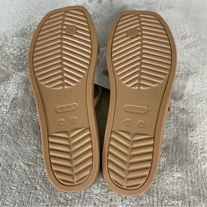 Crocs Miami Metallic Toe Loop Sandals Womens Size 10 Beige Strappy NEW