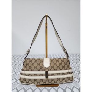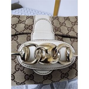Authentic Gucci Horsebit Chain Flap Shoulder Bag Brown/Beige/Cream