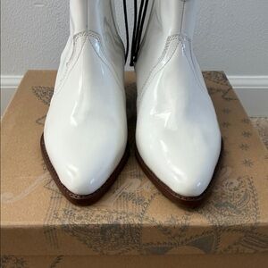 Free People- White Patent New Frontier Western Ankle Boots NIB- Size 6.5 (36.5)
