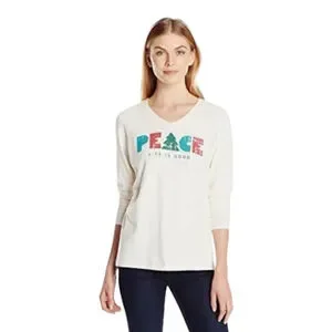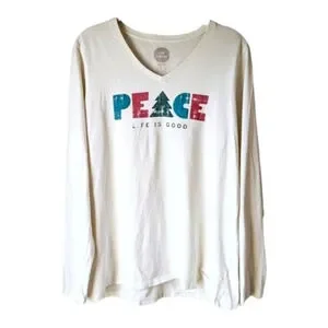 Life is Good Christmas Tree Peace Long Sleeve Soft Tee Sz L