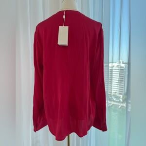 Hugo boss Red/strawberry Long-Sleeve Pleated Front Women's Blouse silk
