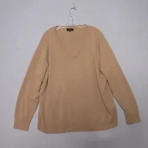 Quince Sweater 3X Camel Color Mongolian Cashmere V-Neck Quiet Luxury Soft