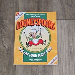 Discover delicious low-fat recipes with the Looneyspoons Cookbook. Enjoy a vibrant yellow cover that adds a splash of color to your kitchen. Perfect for home parties and healthy cooking enthusiasts.