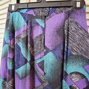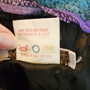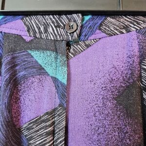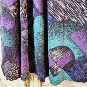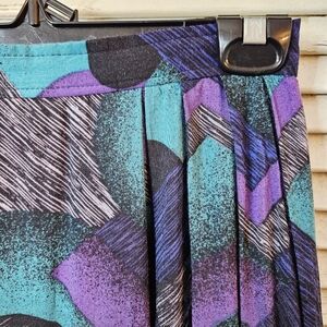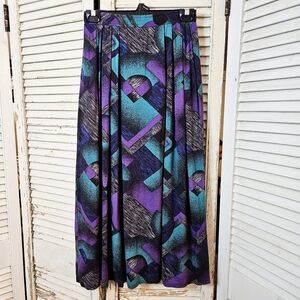 Vintage 80s midi skirt in gorgeous shades of teal blue and purple. Soft flowy rayon fabric, fully lined in black acetate. Back zip with side pockets. Labeled a 9/10, but fits a modern XS or small. In excellent condition with no marks or flaws.
