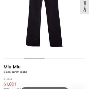 Slim skinny fit in deep black denim. Back pocket features brown Miu Miu logo embroidery. Clean, modern styling for casual wear. Straight leg boot cut size xxs (36)