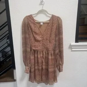 HOUSE OF HARLOW PINK AND TAN MINI DRESS