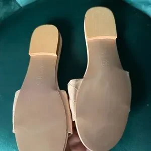 Step out in style with these elegant beige quilted slide sandals. Perfect for any occasion, these sandals offer both comfort