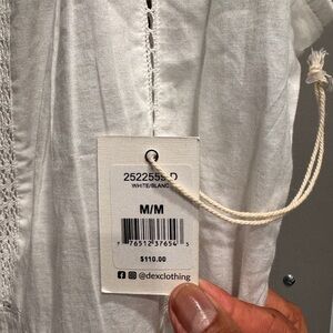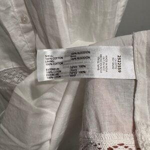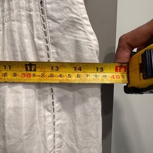 Effortless white cotton maxi dress with delicate lace and pintuck detailing. Lightweight and breathable for warm-weather wear. Has a removable camisole. Perfect for your summer party or country concert. 48” long, hits mid shin. 15” across pit to pit. New with tags.