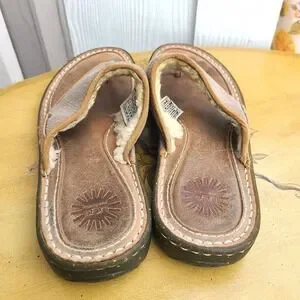 UGG Layback EU 39 US 8 Brown Fleece Lined Flip Flop Thong Sandals Comfort Shoes