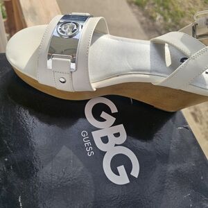 Guess Cream Wedge Sandals with Silver Accents