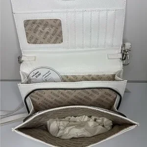 Steve Madden White Embossed Logo Chain-Accent Crossbody