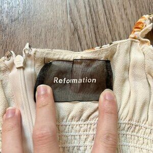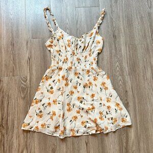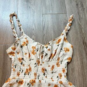 Reformation Yellow Floral Elyse Tie Front Smocked Mini Dress; brand new without tags