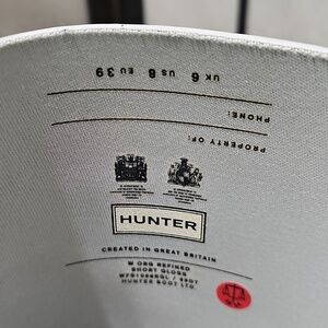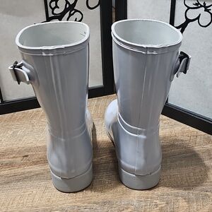 Glossy light gray boots by Hunter. Ideal for wet weather.