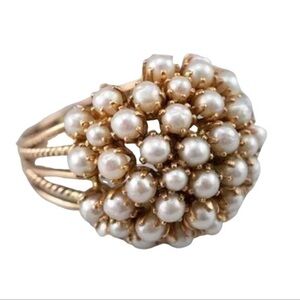 Vintage Gold Pearl Cluster Ring