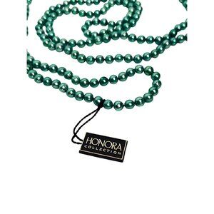 This Honora necklace features a 60-inch strand of luminous aqua blue/green cultured pearls, offering timeless elegance and versatile styling options.