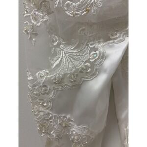 Vtg San Martin Wedding Dress Long Sleeve Train Lace Embroidered Tulle Sz 6/8