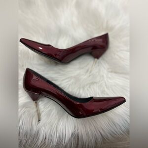 Stuart Weitzman Burgundy Red Patent Leather Pointed Toe Heels