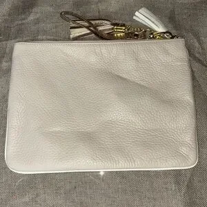 Pebble leather large pouch with cream leather trim