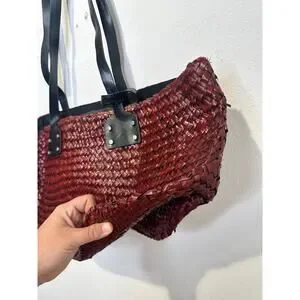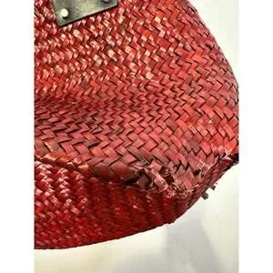 ALLSAINTS Women's Red Straw No Closure Open Zipper Pockets Mosley Straw Tote Bag