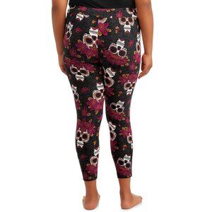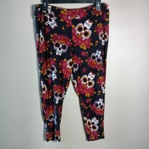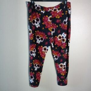 Terra & Sky Full Length Sueded Leggings Skull Flower Crown Print Size Plus 2X