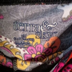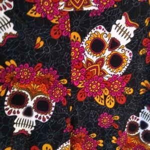 Terra & Sky Full Length Sueded Leggings Skull Flower Crown Print Size 2X