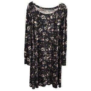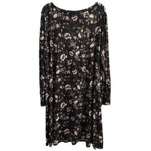 LOFT Dress Women’s Black Floral Fit & Flare Ultra Stretch Long Sleeve Sz 20-22