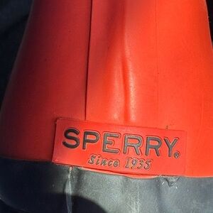 Sperry Walker Spray Rain Boots size 9 red and black with signatyre sperry laces.