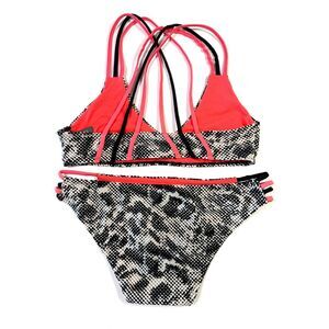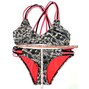 BCA By Rebecca Virtue Women Small Bikini Black White Hot Pink Geometric Strappy