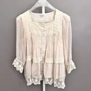 Vintage Romantic Boho Cottagecore Lace Collar Cream White Button Down Blouse