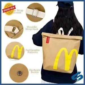 Style: Retro paper bag design, casual canvas backpack