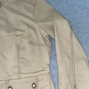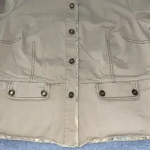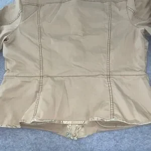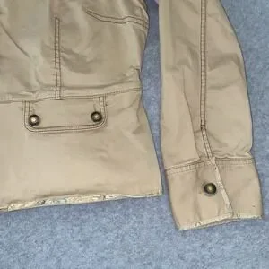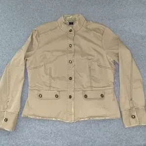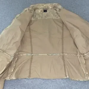GAP Women's XL Khaki Cotton Twill Jacket Floral Trim Utility Peplum Button Up