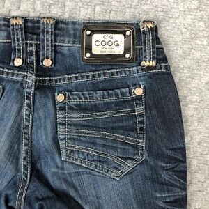 Coogi Jeans Juniors 3/4 W28 Blue Dark Wash Low Rise Straight Studded Zip Stretch
