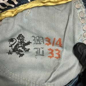 In Good Condition (May not be true to size! Actual size may differ from tag due to potential shrinkage or hemming). Gently used with light signs of wear and/or visible flaws, it may have a few signs of wear. There are holes on the front side inseam of the jeans. See photos!