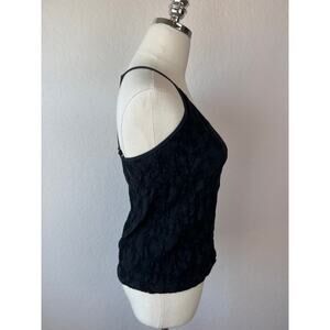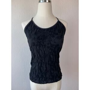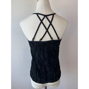 Anthropologie Black Strappy Back Tank Top Floral size Medium