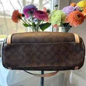 Brand: Coach Material: Signature coated canvas with genuine leather trim Color: Beige / Brown Hardware: gold‑tone